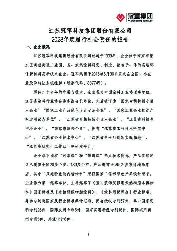 江蘇冠軍科技集團股份有限公司 產品碳足跡核查報告